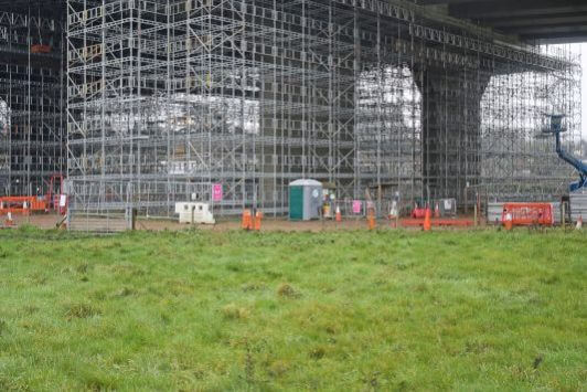 There were three spans underneath the viaduct that were imperative to keep free of scaffold. Unimpeded access to the canal and canal tow path was needed, as well as in the main road running adjacent to this. We had to design our scaffold around these roads and canals, meaning our scaffold had to be tied in different places.