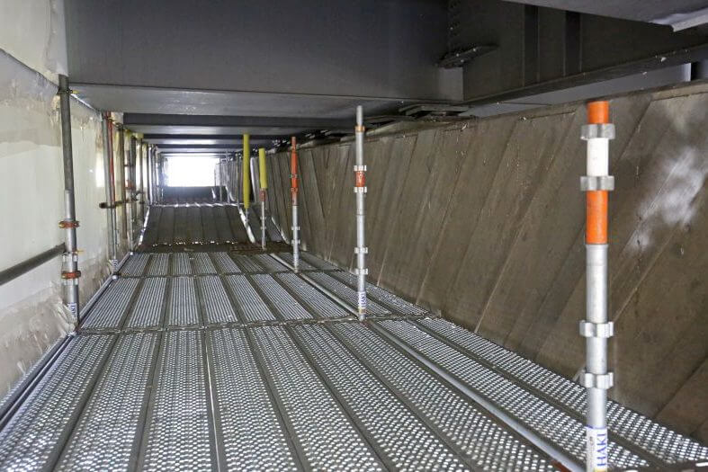 was provided in the main spans with single span access reaching up to 25m in length at each box girder location. - HAKI system scaffold